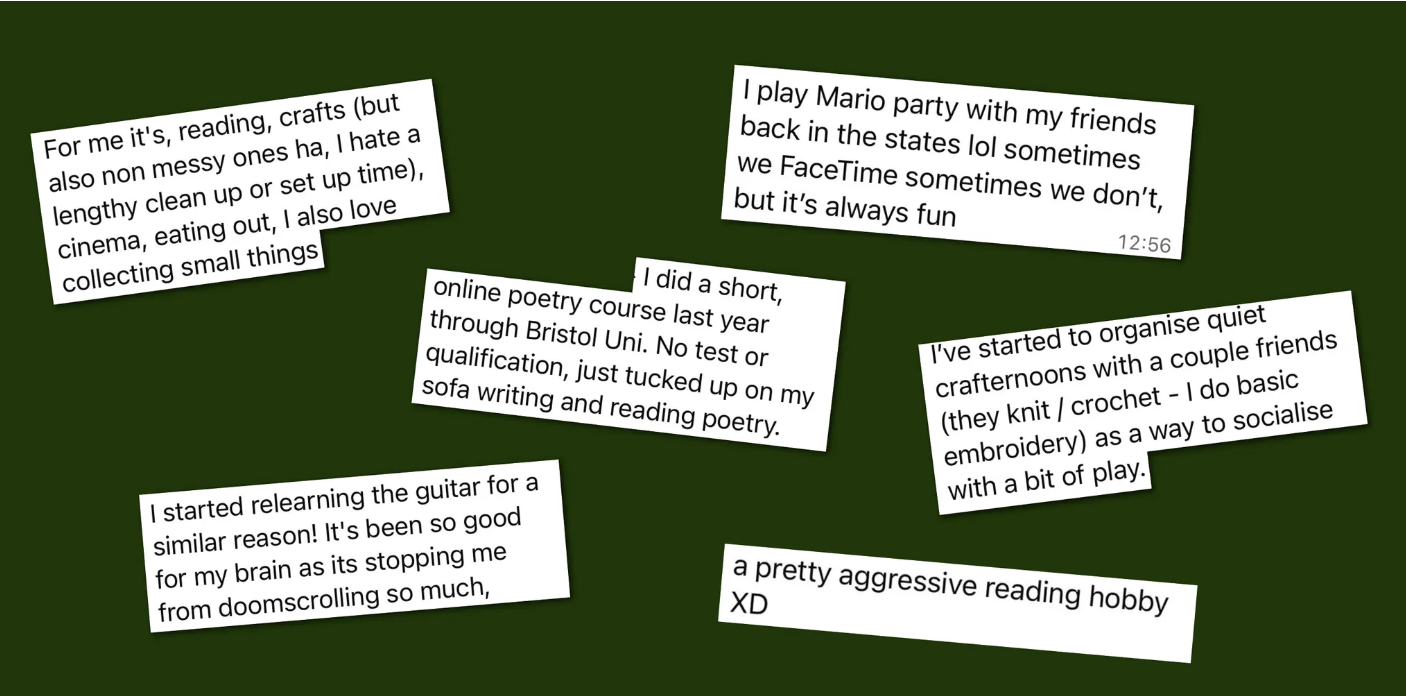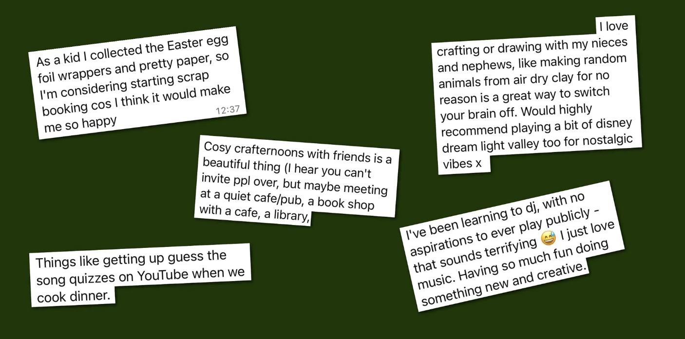 Here’s a collection of fun ideas that Wild members shared (plus some extras), that we just had to bring out of the group chat to inspire and remind everyone to inject some softness into life.